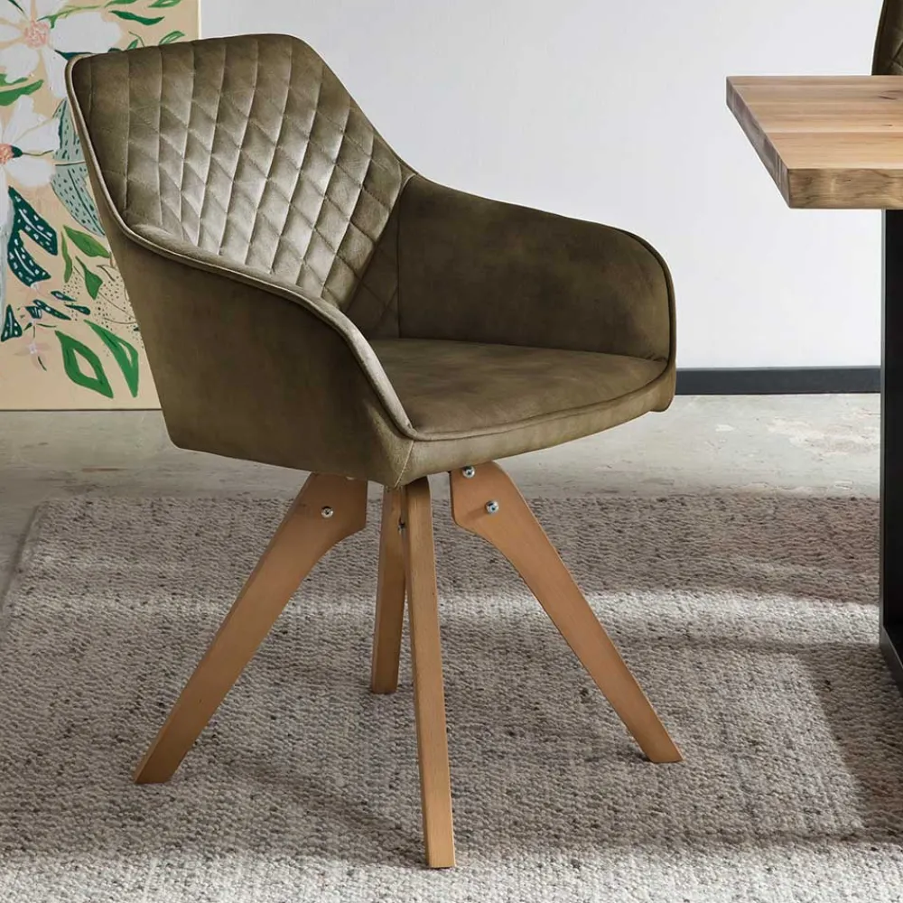 - Souveräner Polster-Drehstuhl in Oliv und Eichefarben