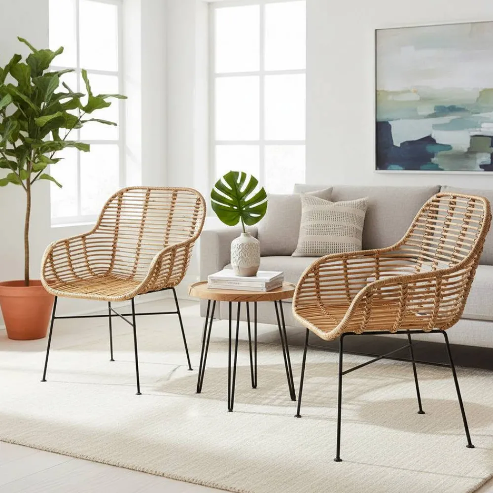 - Atemberaubendes Stuhl Set in Rattan Naturfarben und Schwarz