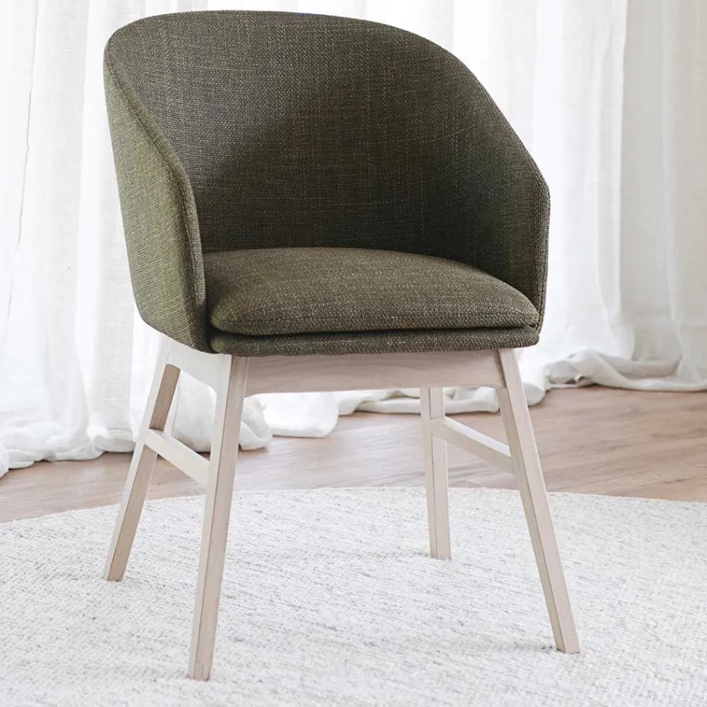 - Stilvolle Esszimmer Stühle in Dunkelgrün und Eiche White Wash