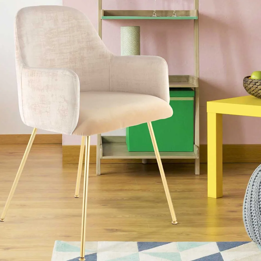 - Edler Polsterstuhl in Beige, Cremeweiß und Goldfarben