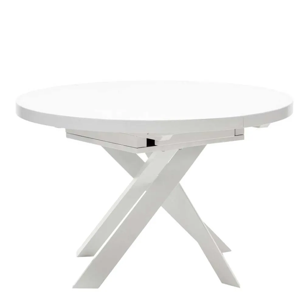 - Tischplatte aus gehärtetem Glas mit einer Basis aus lackierter MDF
