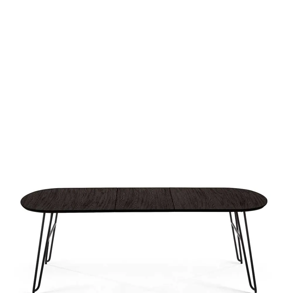 - 001: Breite: 220 / Tiefe: 90 / verlängerbar um je 40 cm, von 140 bis auf 220 cm / mit Kulissenauszug mit zwei Einlegeplatten / für sechs Personen
