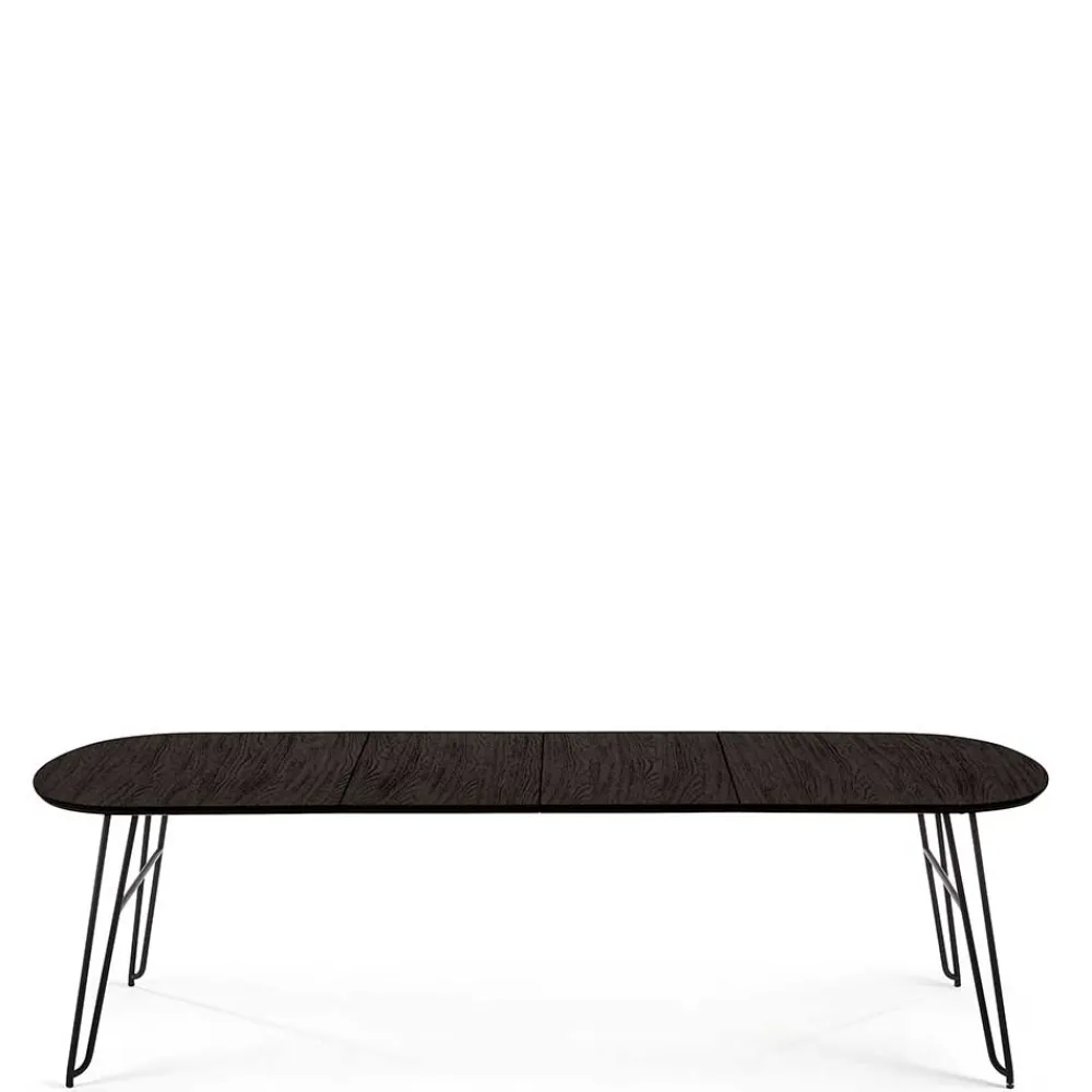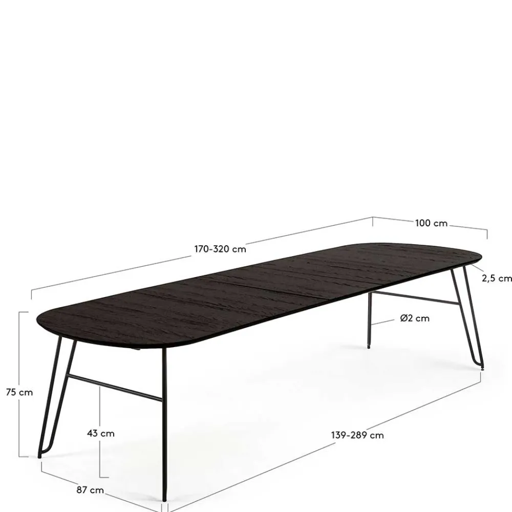- 002: Breite: 320 / Tiefe: 100 / verlängerbar um je 50 cm, von 170 bis auf 320 cm / mit Kulissenauszug mit drei Einlegeplatten / für zehn Personen