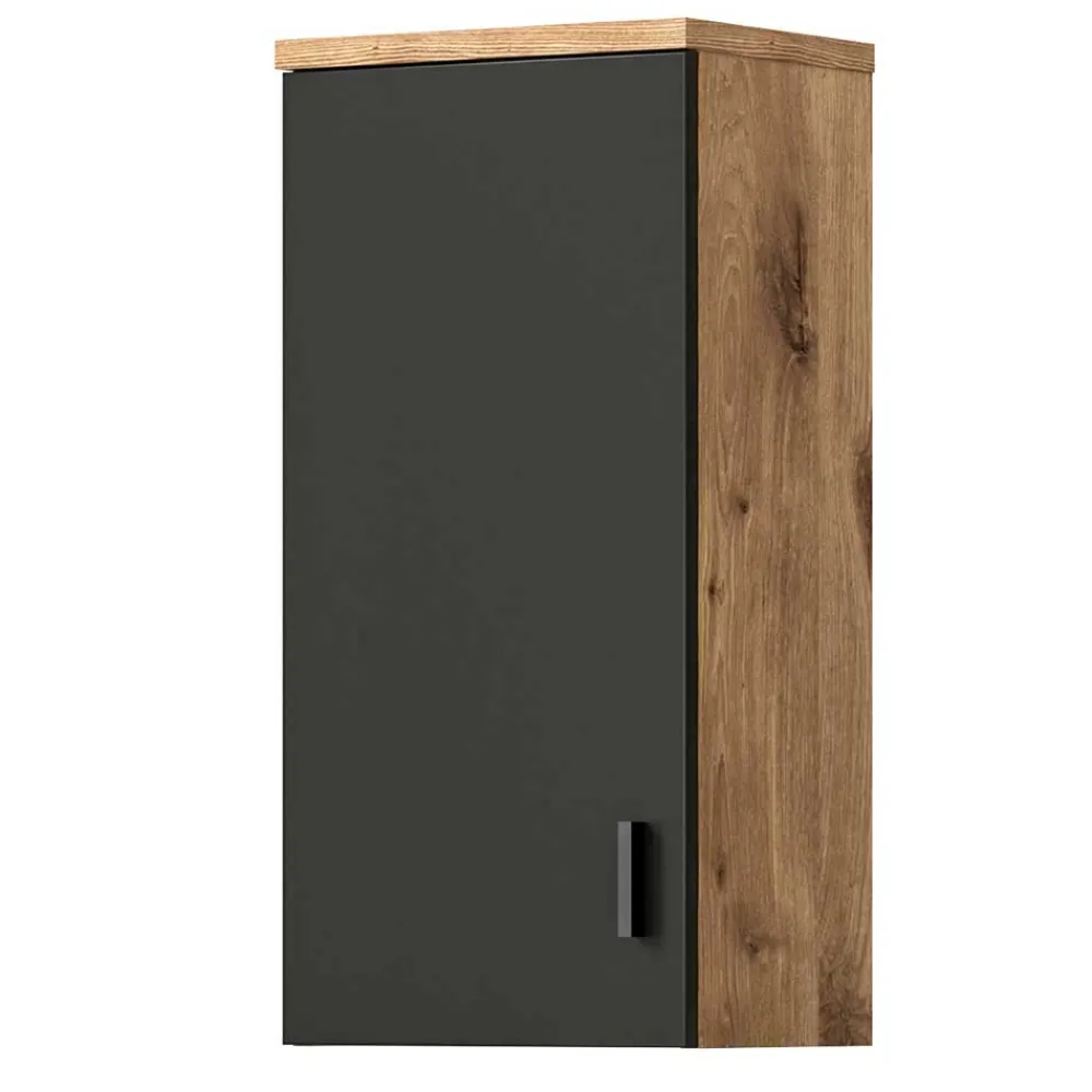 - Kompakter Bad Hängeschrank in Dunkelgrau und Wildeichefarben