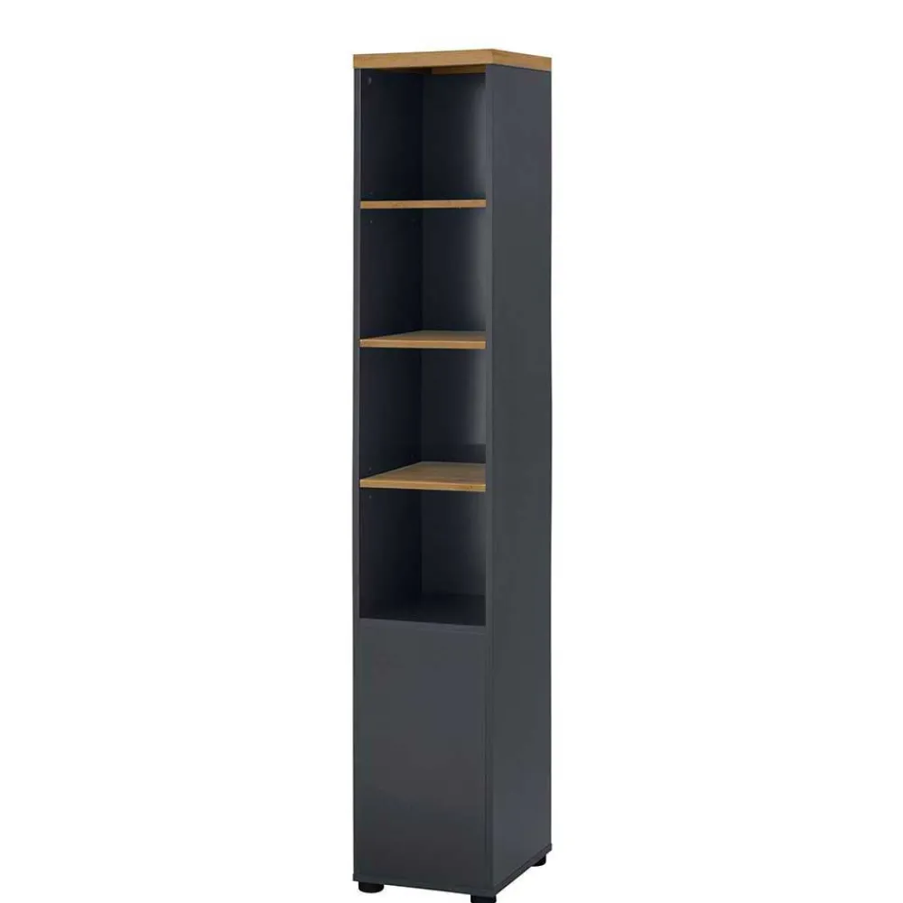 - Praktischer Bad Hochschrank in Anthrazit und Wildeichefarben