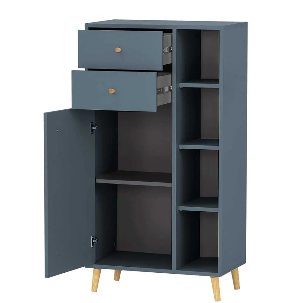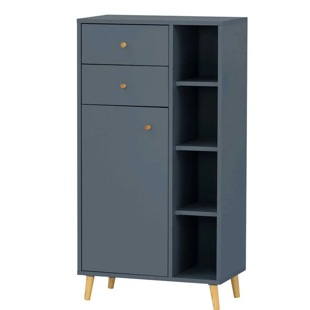 - Smartes Bad Highboard in Petrol und Eichefarben