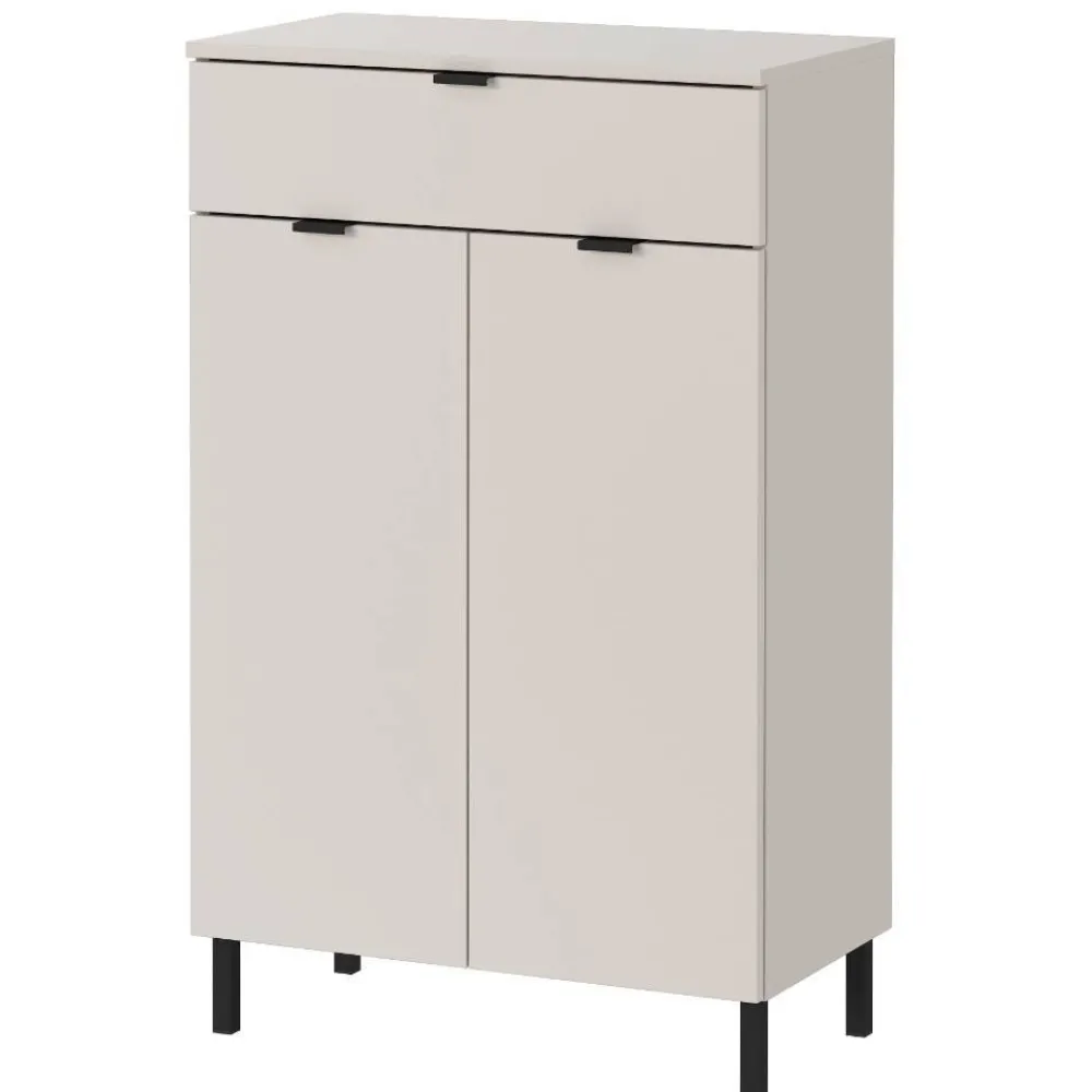 - Oben eine Schublade mit Metallauszug und Soft Close Funktion (Selbsteinzug), belastbar bis max. 10 kg