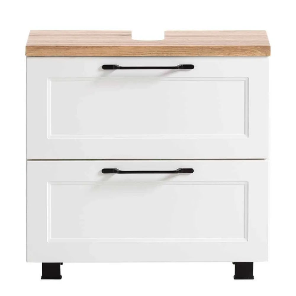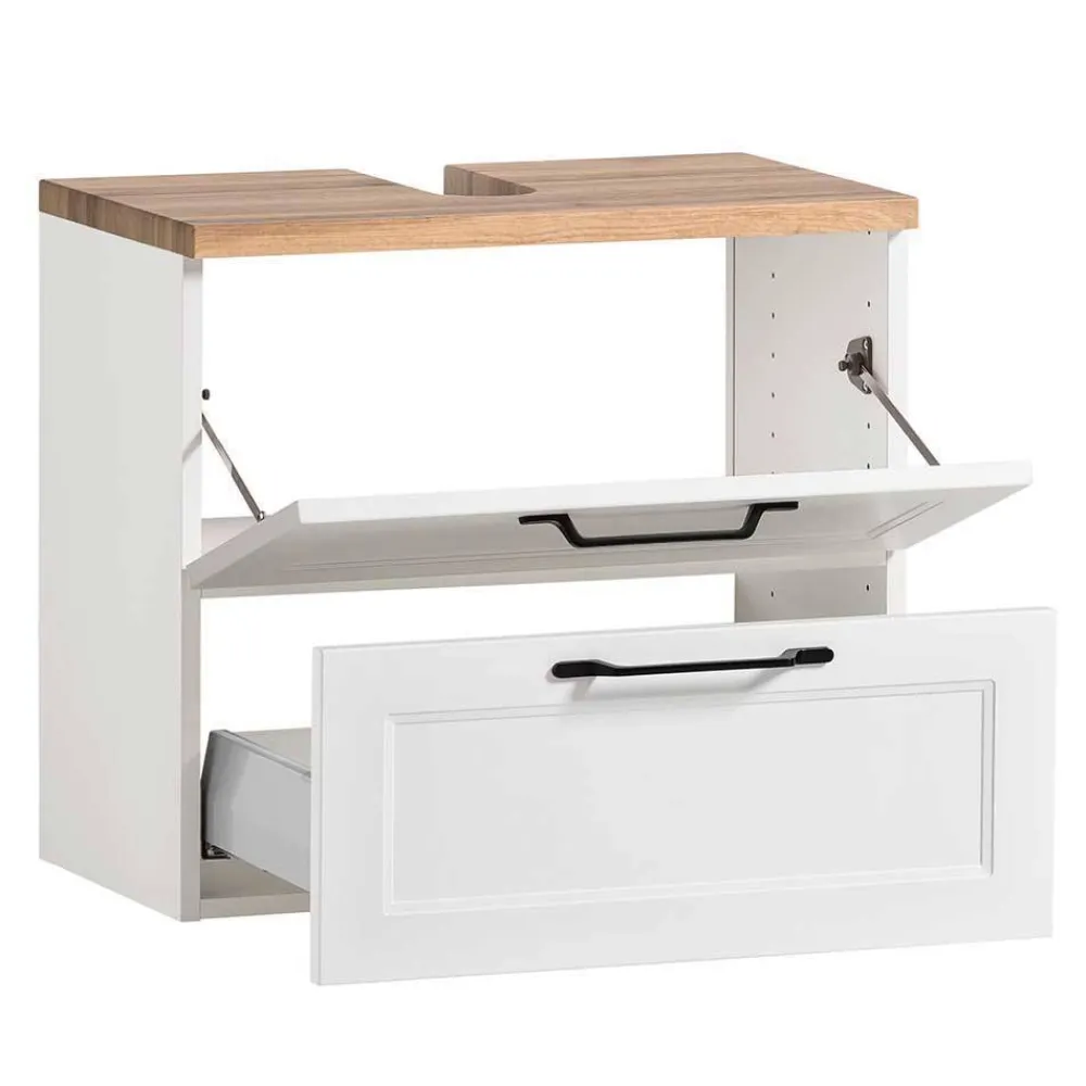 - Zweckmäßige Badmöbel in Weiß und Wildeichefarben