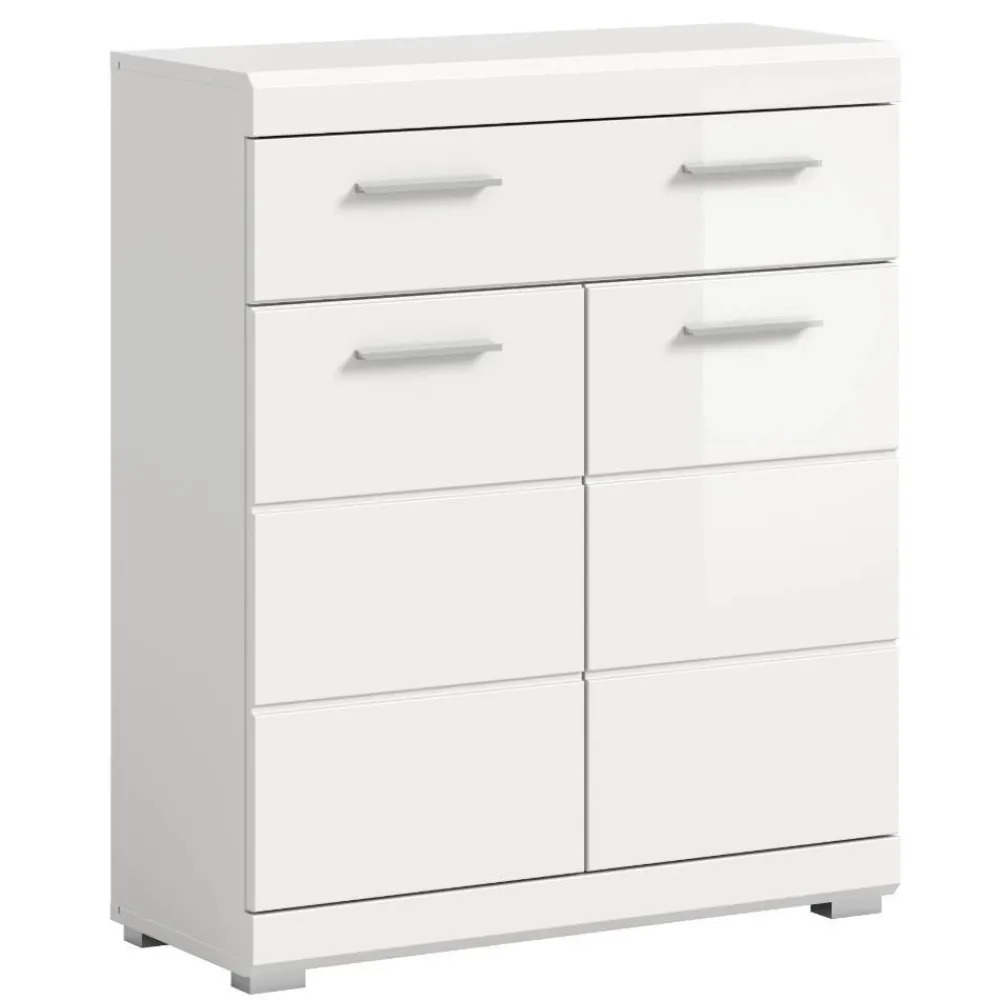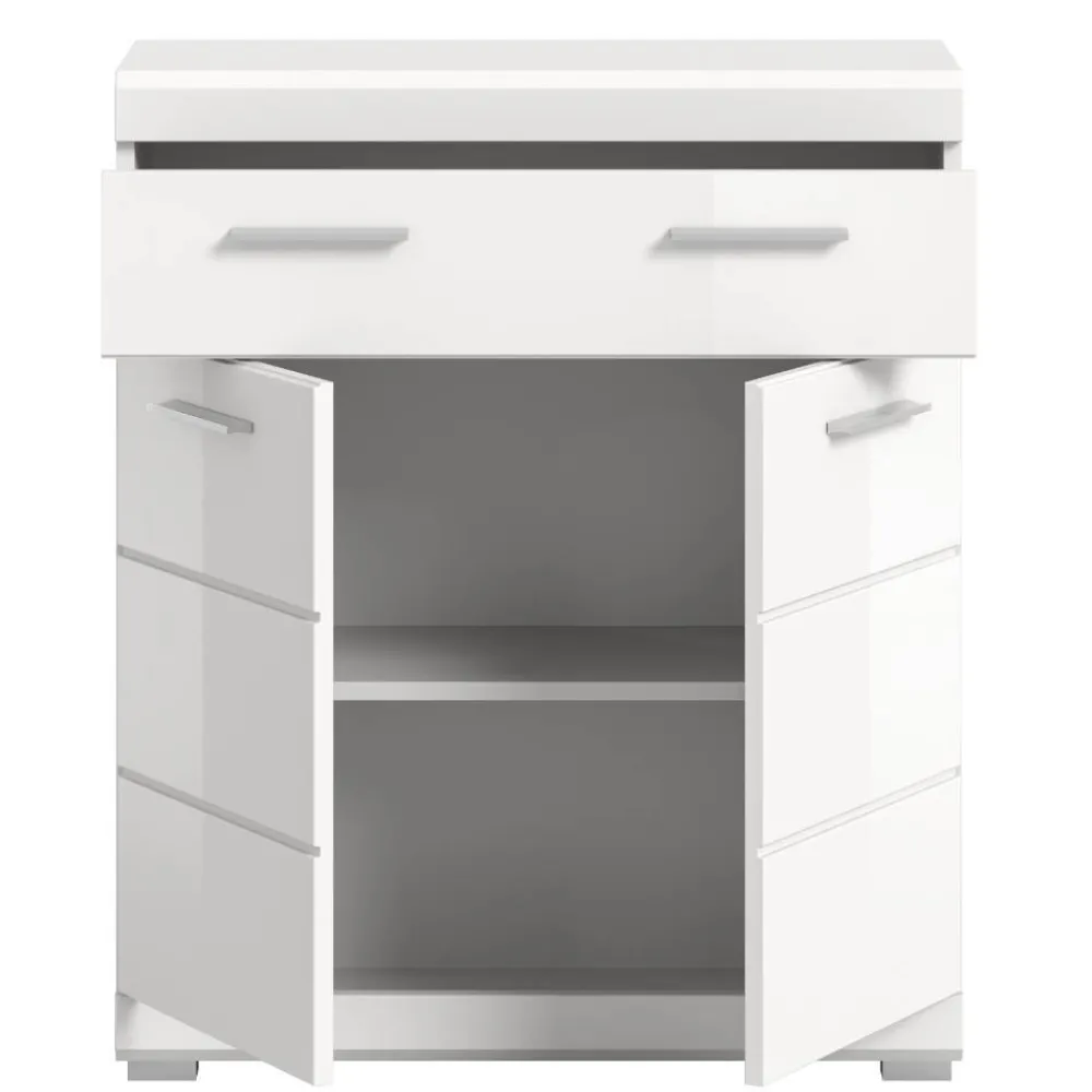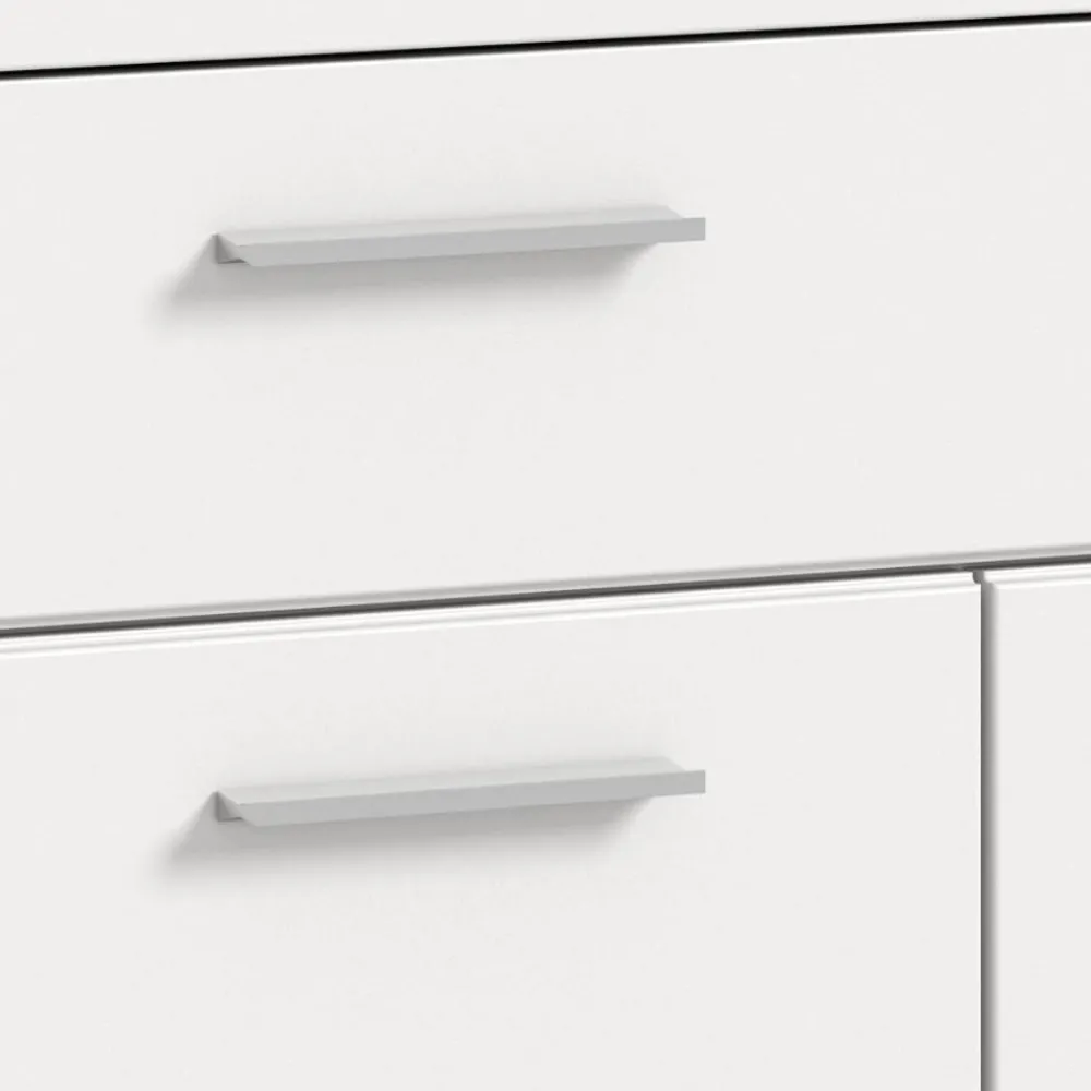 - Oben eine Schublade mit Metallauszug (Vollauszug), bis max. 2 kg belastbar