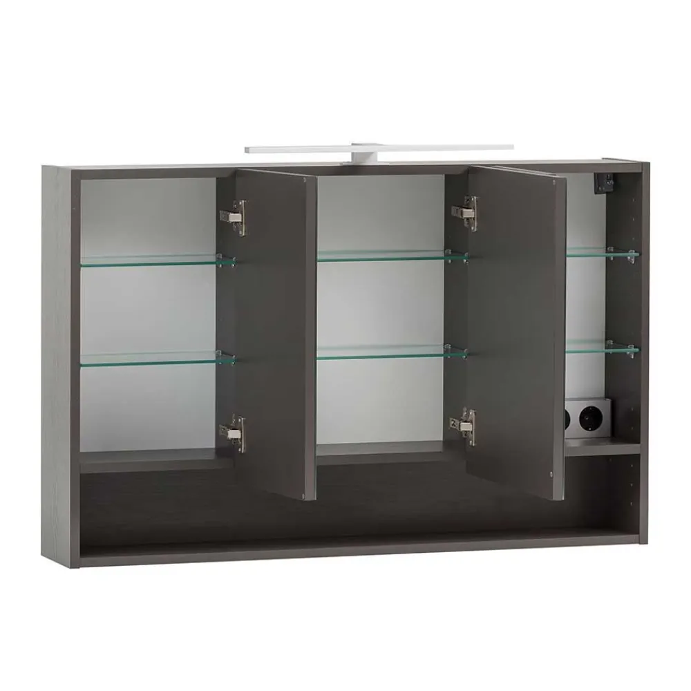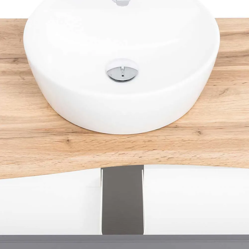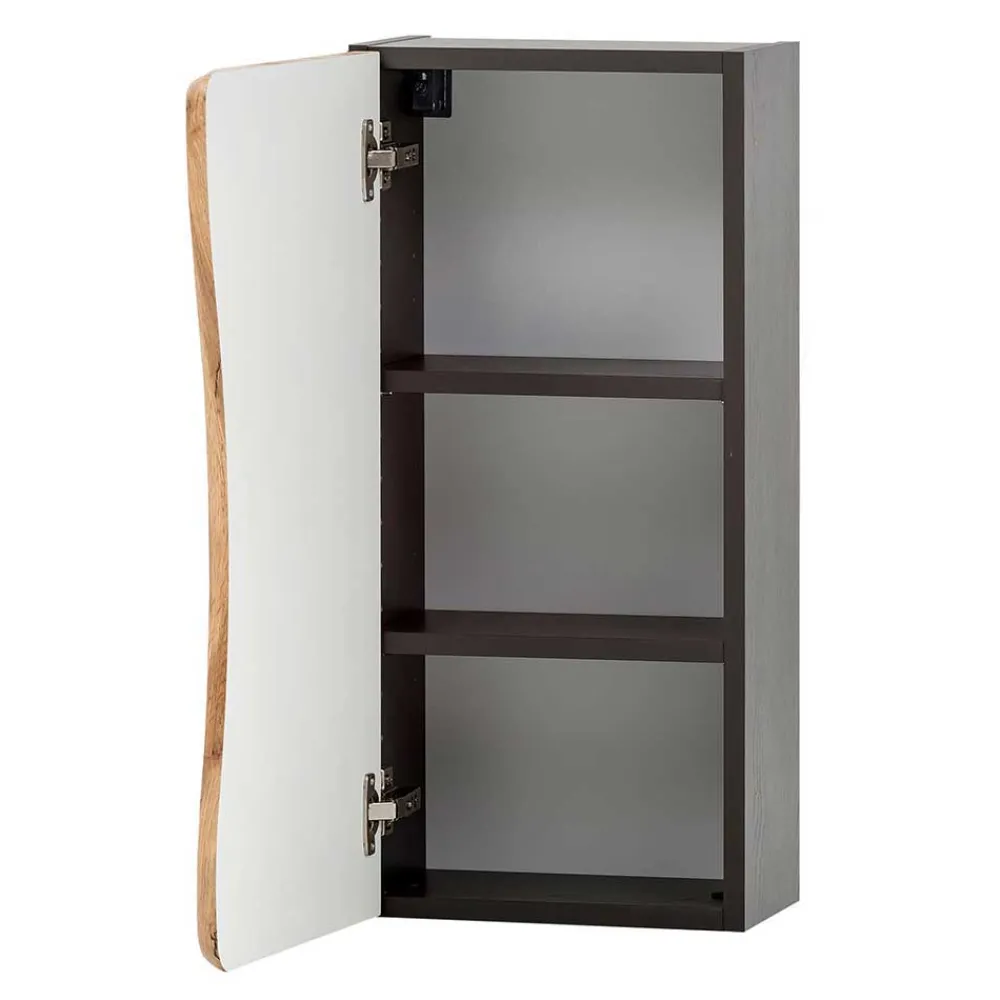 - Badmöbel Ensemble in Dunkelgrau und Wildeichefarben mit Baumkantenoptik