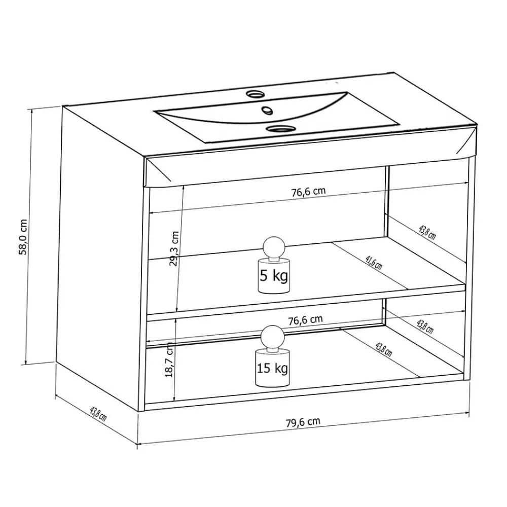 - Maße Unterschrank: BxHxT: 79,8x58x46 cm