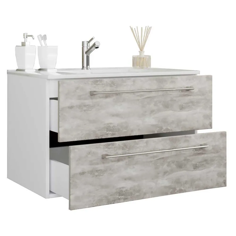 - Trendiges Badmöbel Set in Beton Grau und Weiß