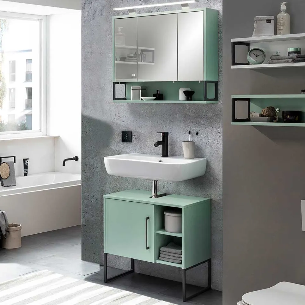 - Erstklassiges Badmöbel Set in Mintgrün und Anthrazit
