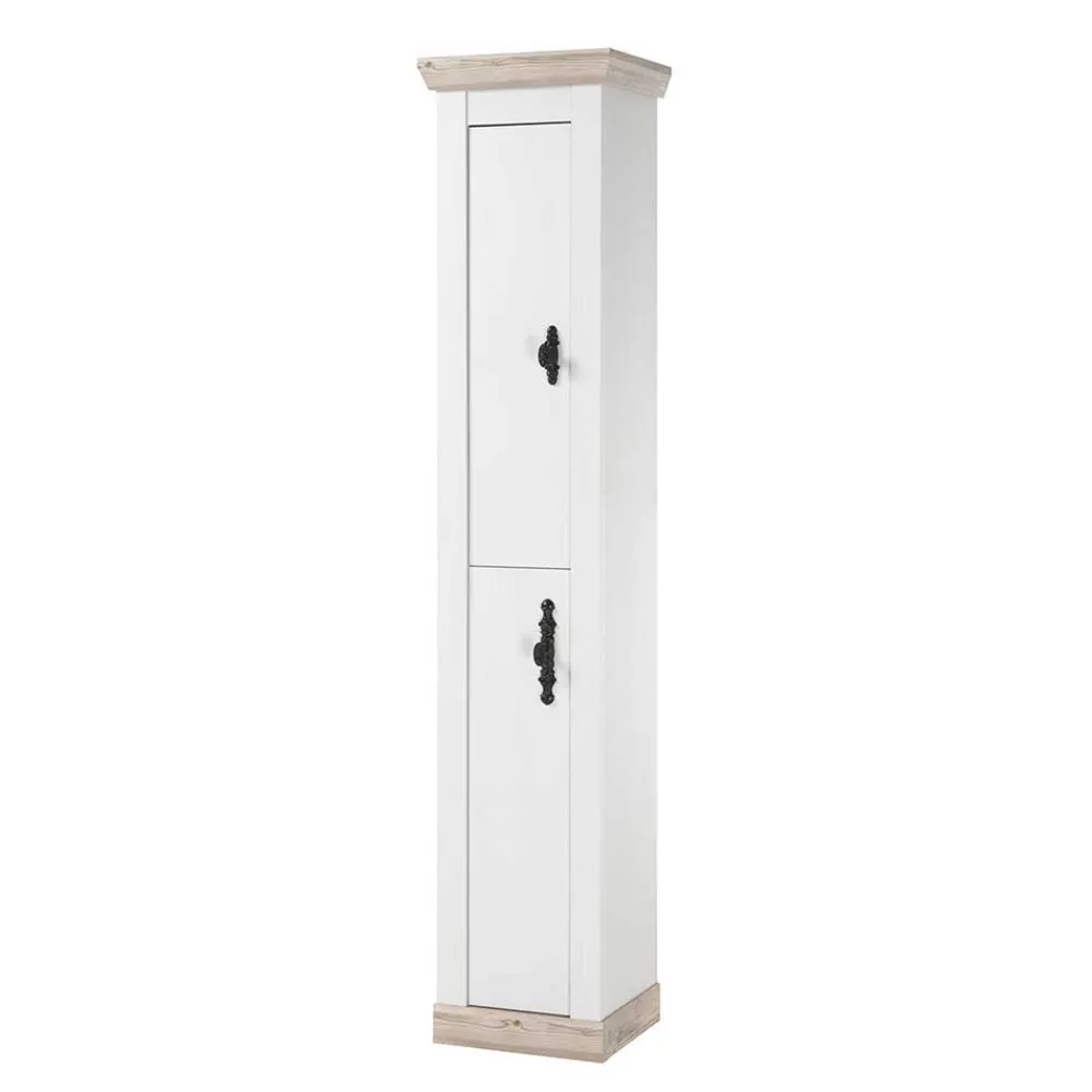 - Oberfläche in Holzoptik Weiß, Sockel und Profilleisten in Pinie verwittert melaminbeschichtet
