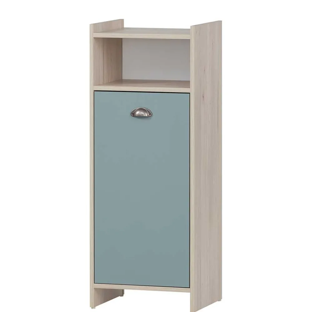 - Ansprechender Bad Seitenschrank in Eiche hell und Hellblau