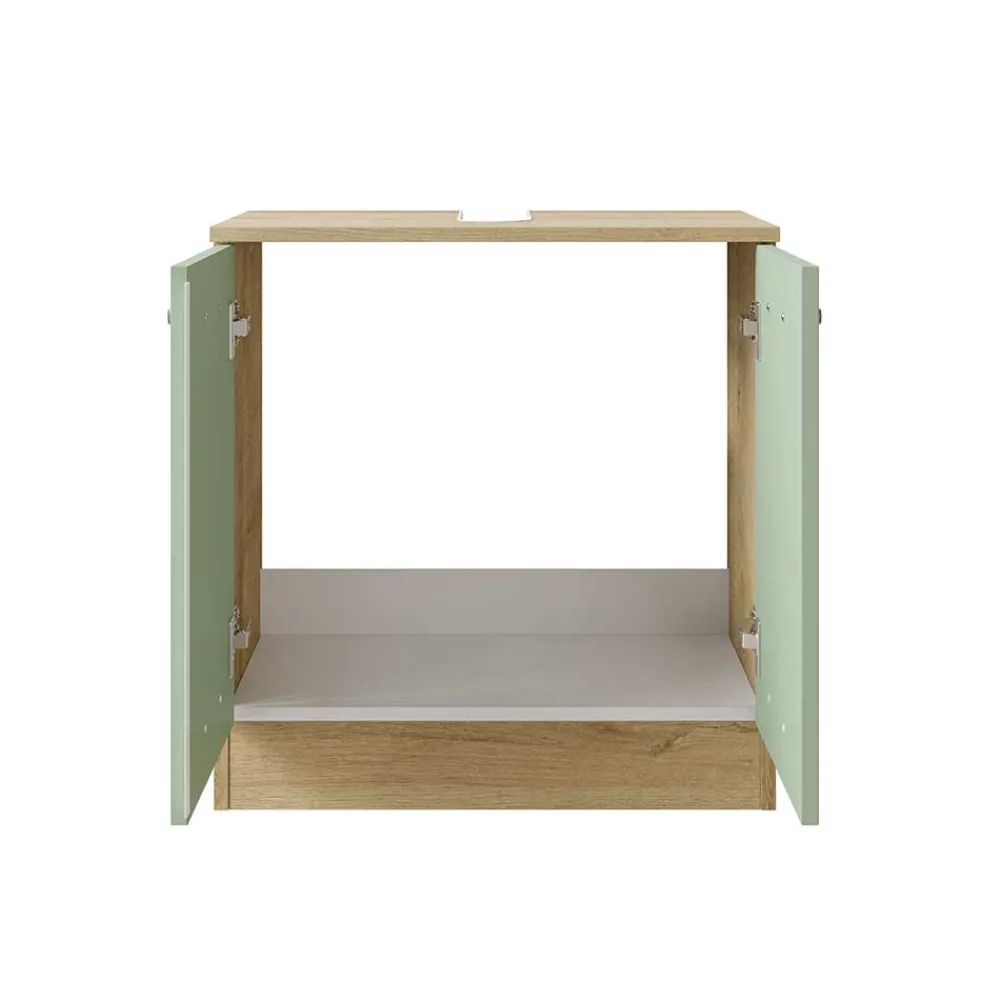 - Trendstarker Waschbeckenunterschrank in Graugrün und Eichefarben
