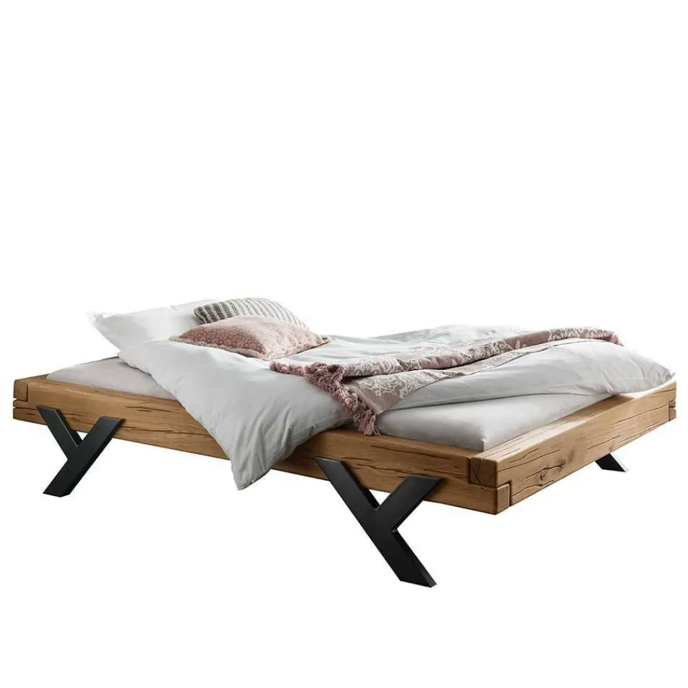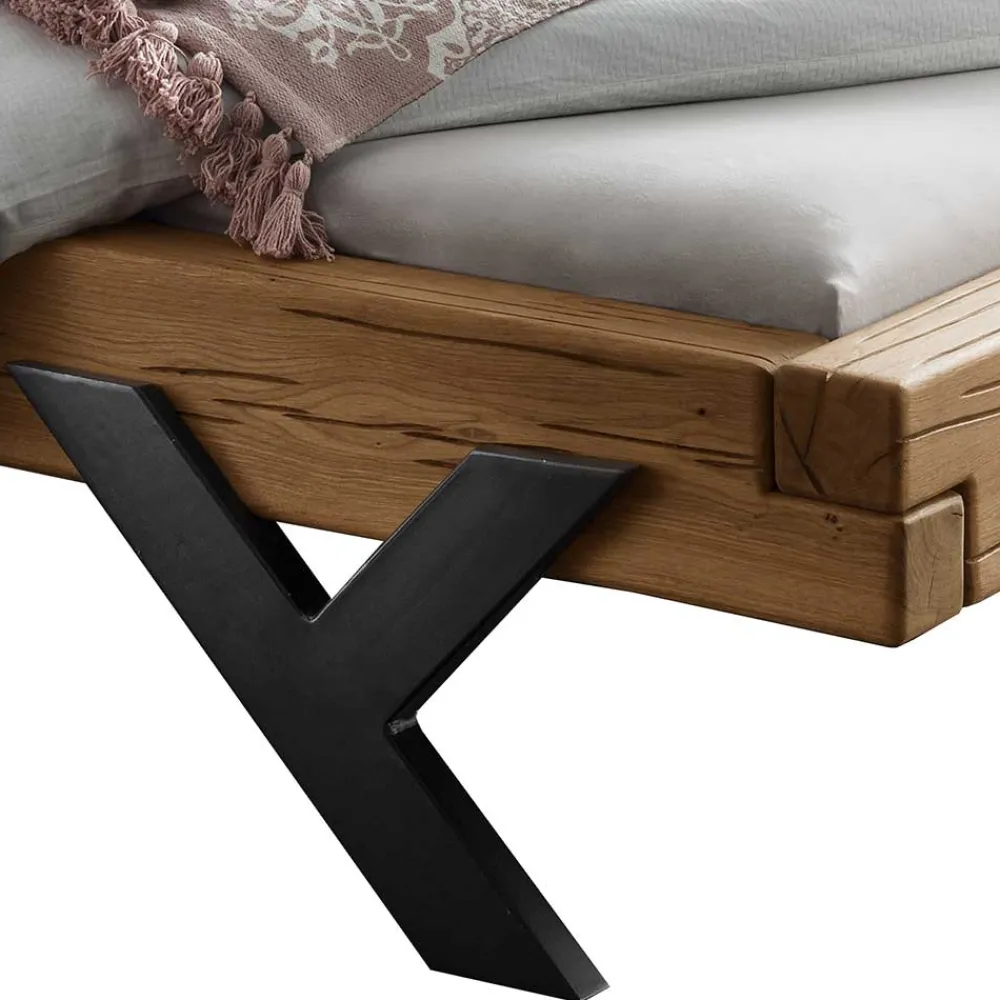 - Authentisches Balkenbett in Wildeiche Naturfarben und Schwarz