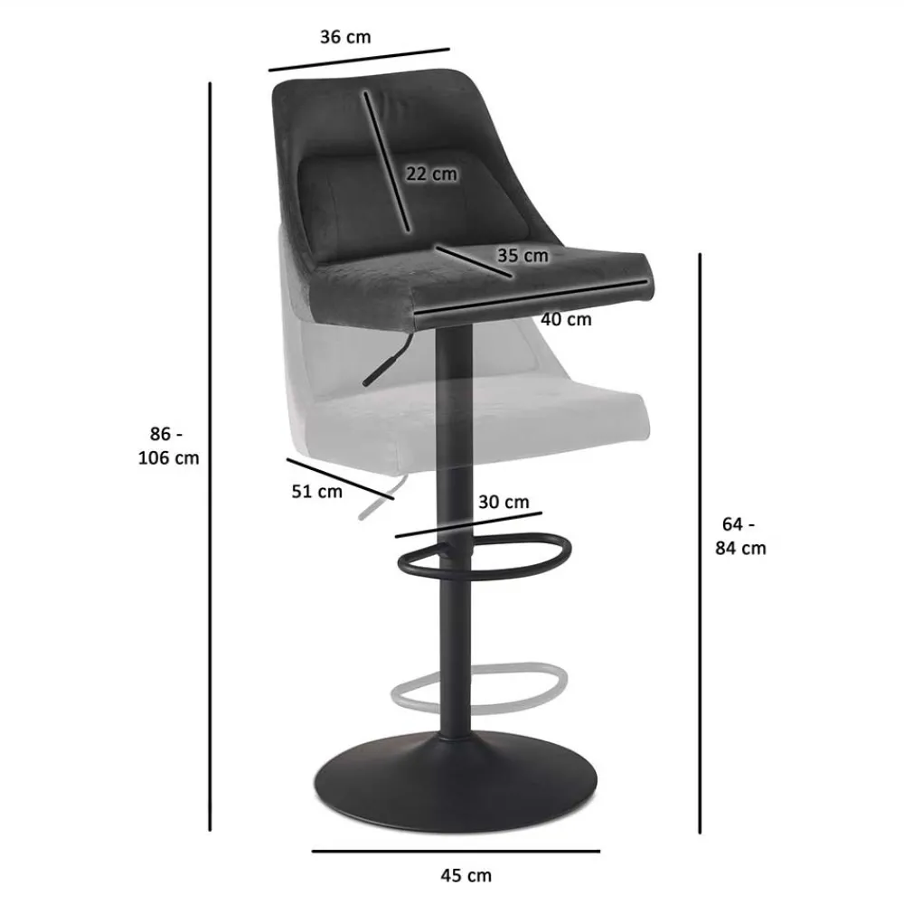 - Mittels Gasdruckfeder lässt sich der Hocker individuell in der Höhe verstellen (86-106 cm)