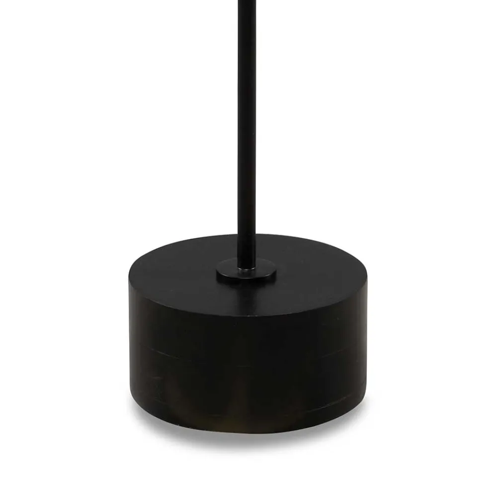 - Schwarzes Säulengestell aus Metall und ein Sockel aus schwarz lackiertem Akazienholz