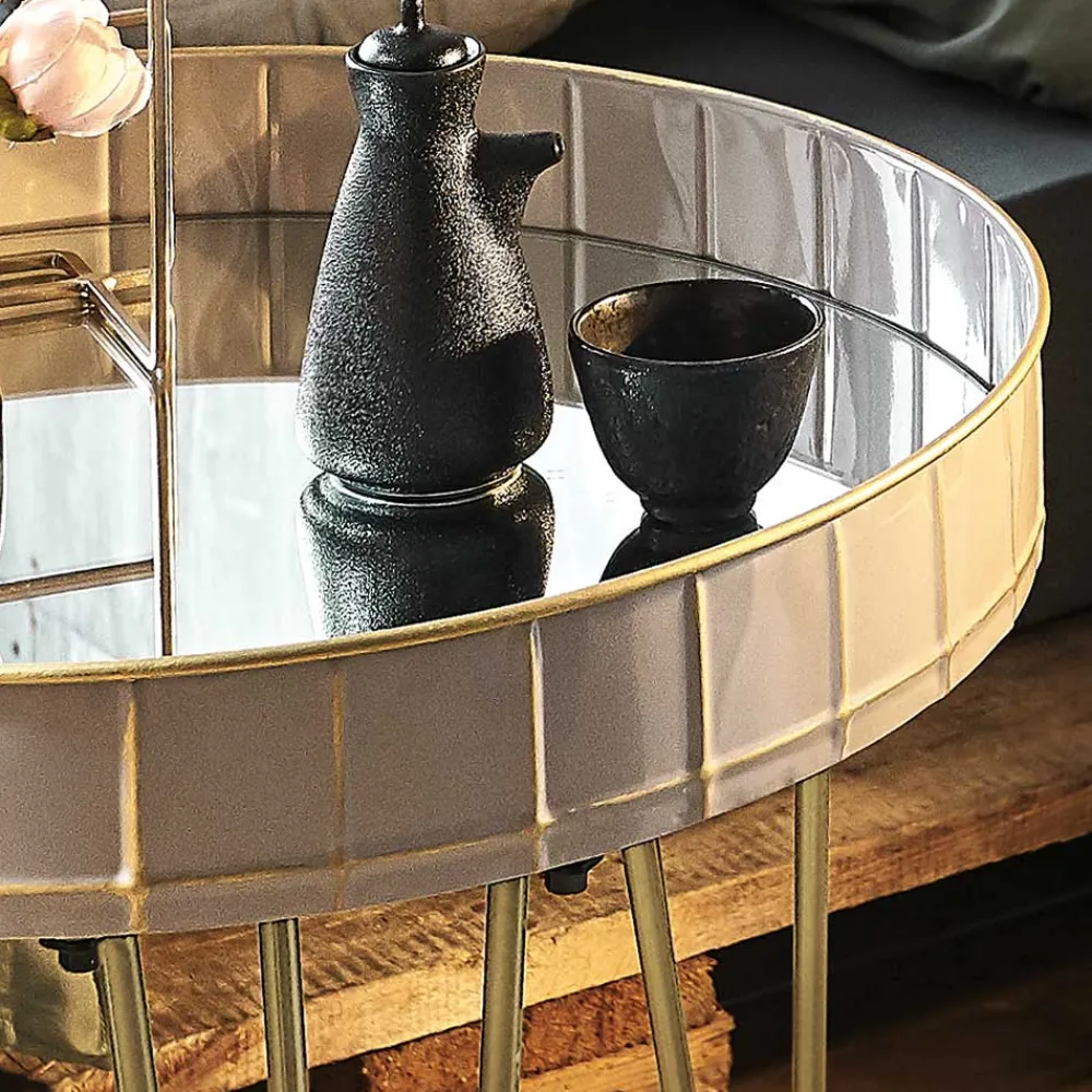 - Coole Beistelltische in Hellblau, Hellgrau und Bronzefarben