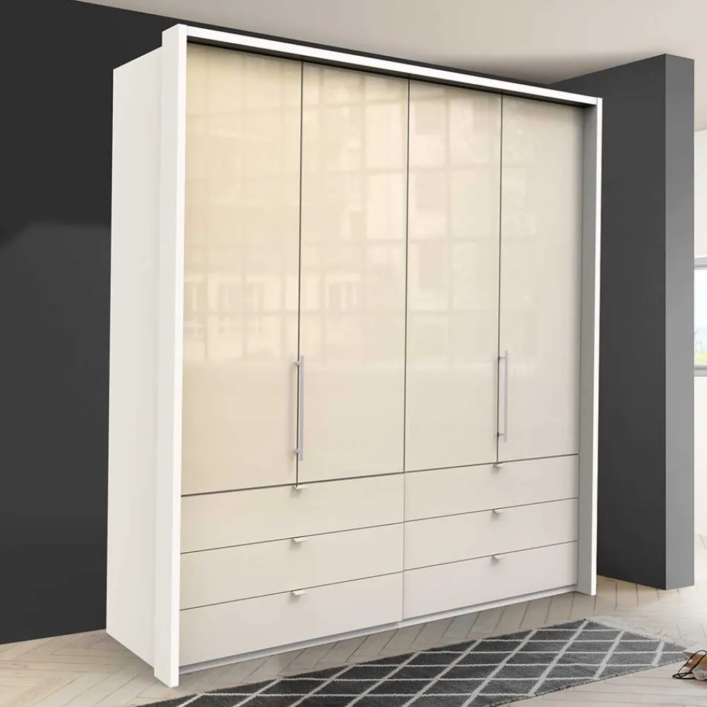 - Hochwertiger Kleiderschrank in Cremefarben und Weiß