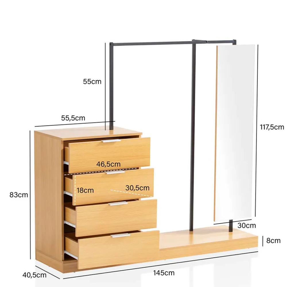 - Aus robuster Spanplatte, Metall und Spiegelglas hergestellt
