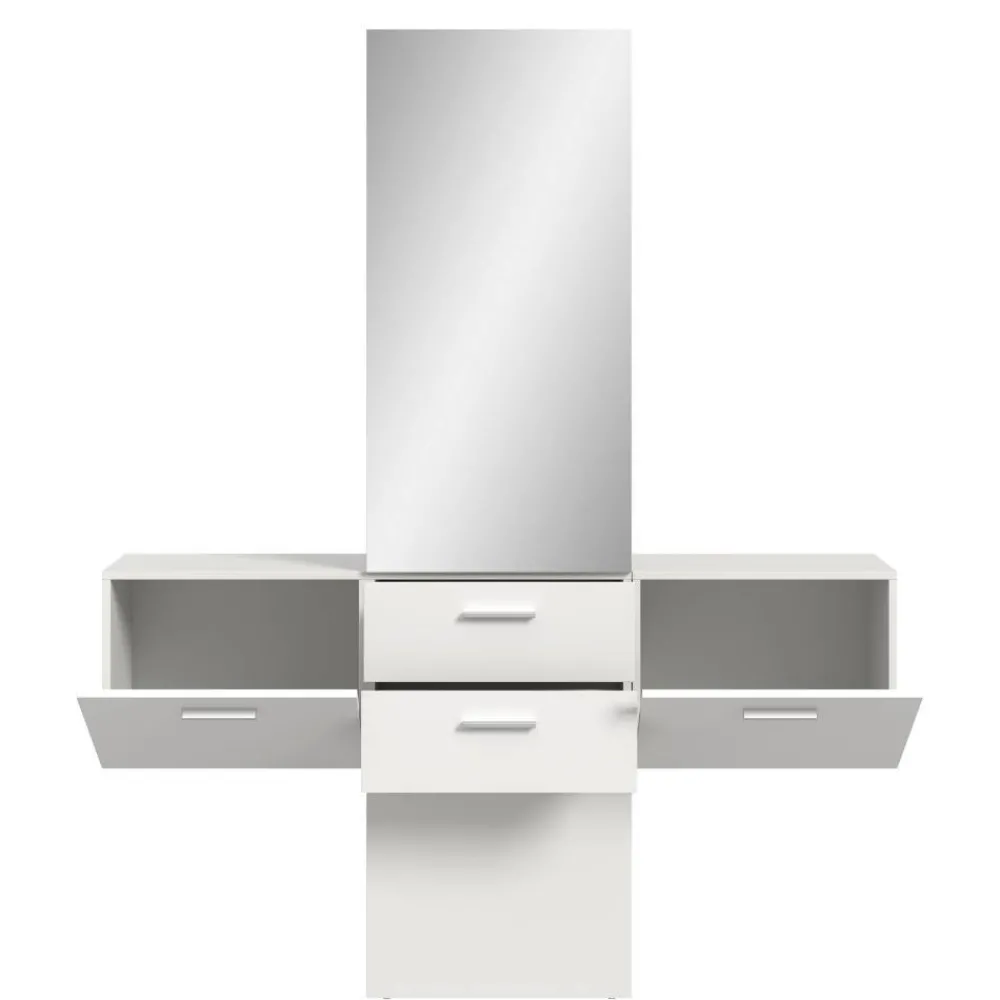 - Aus Spiegelglas und Holzwerkstoff (Spanplatte) hergestellt