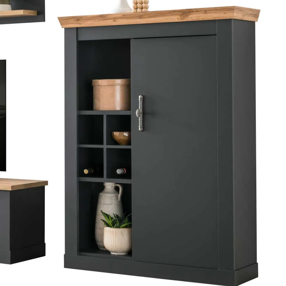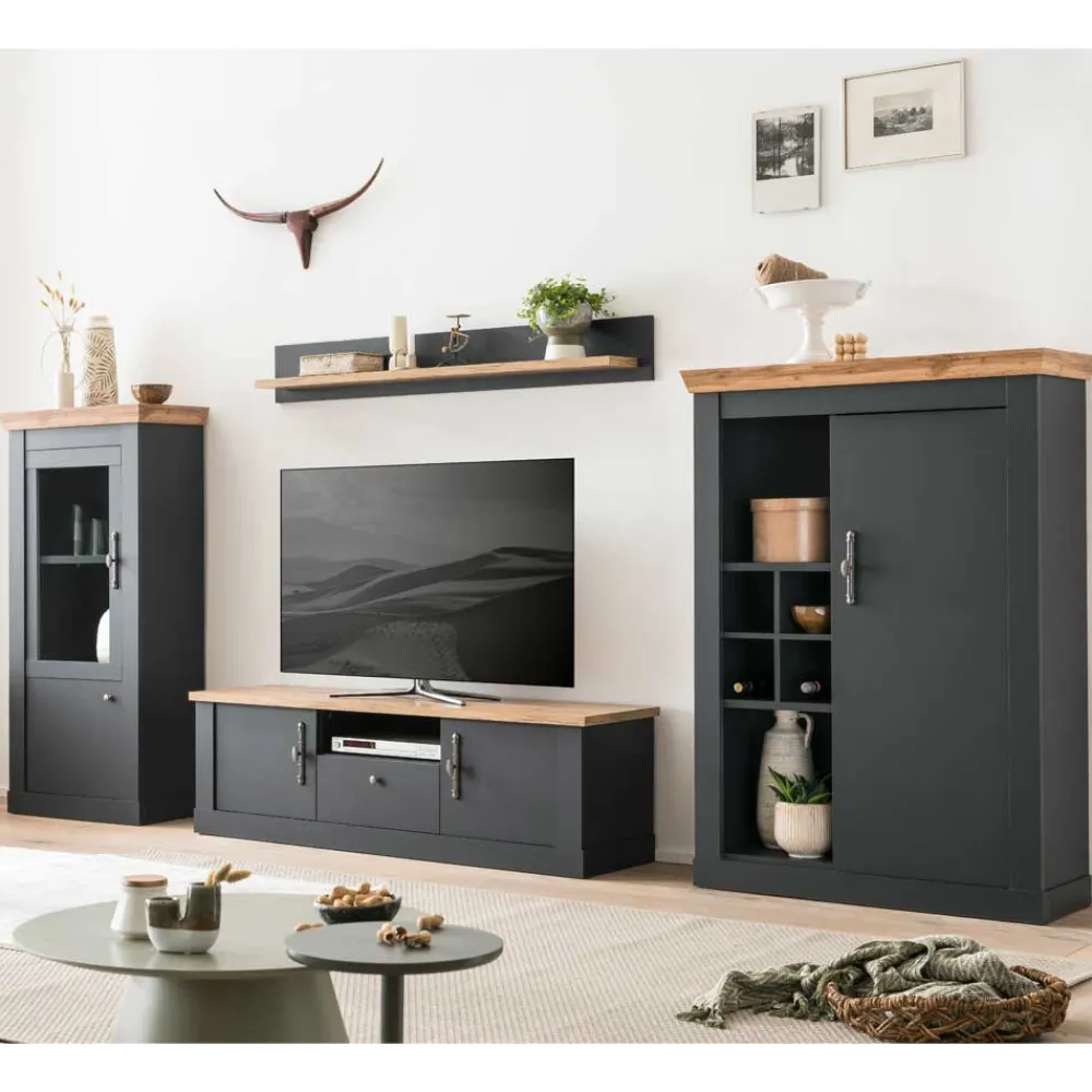 - Erstklassige Wohnwand in Anthrazit und Wildeichefarben