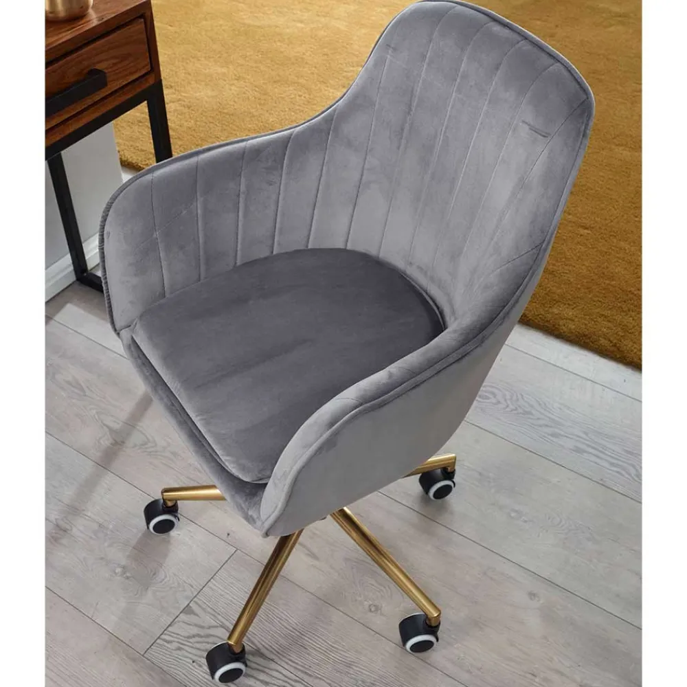 - Attraktiver Schreibtisch Stuhl in Grau und Goldfarben