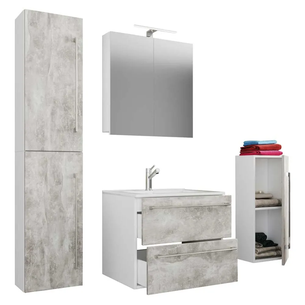 - Trendstarke Badmöbel in Beton Grau und Weiß