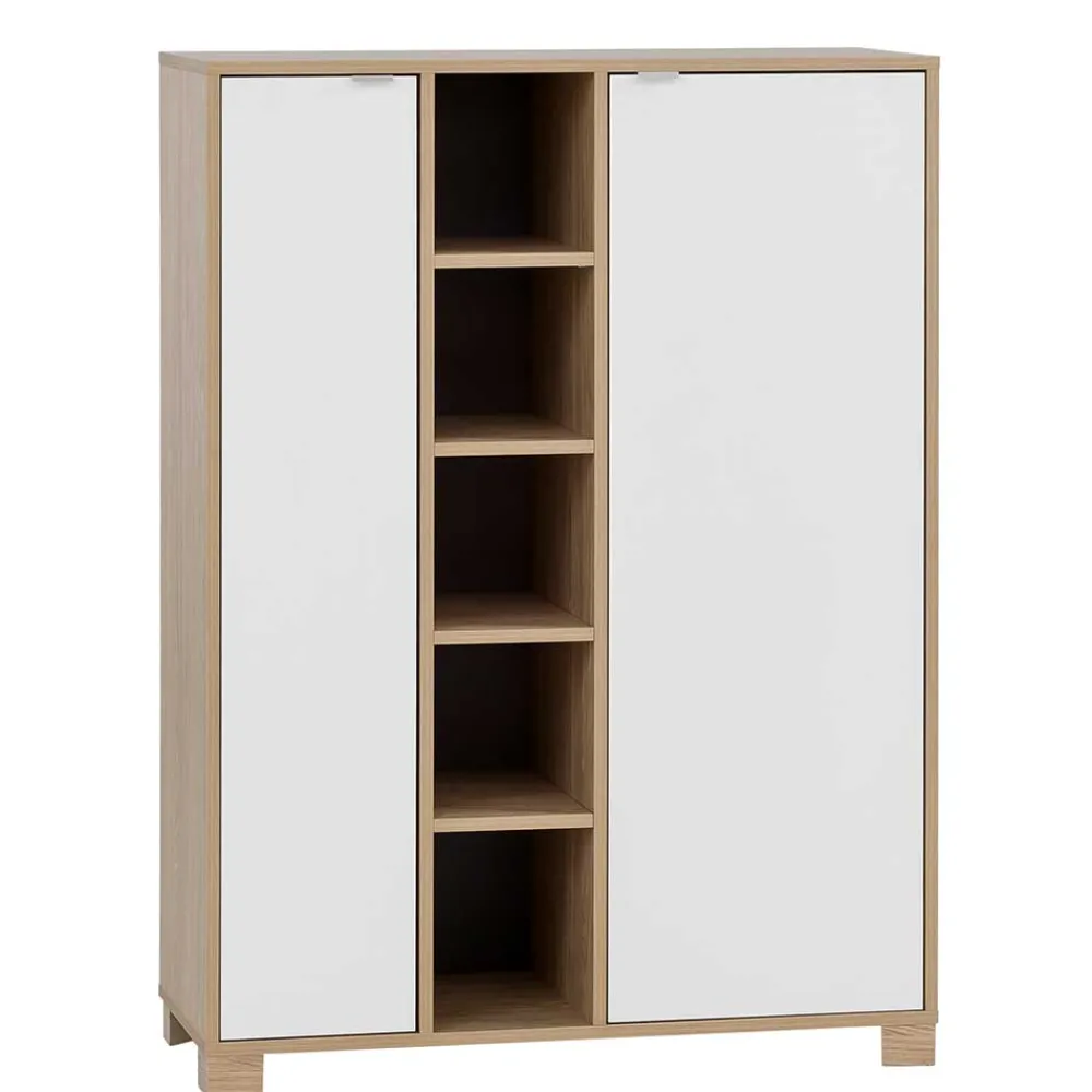 - Apartes Highboard in Weiß und Eiche hell