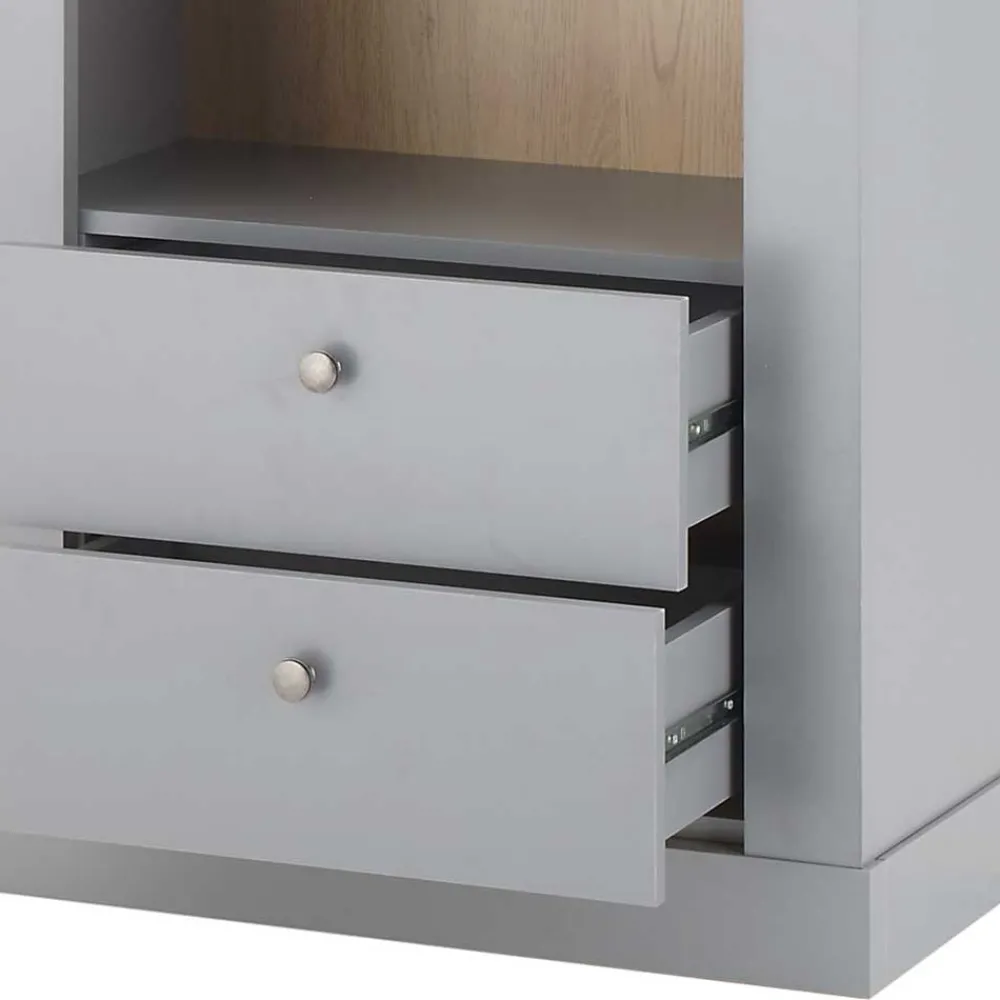 - Zwei Schubladen auf Metallauszug mit Knopfgriffen aus Metall