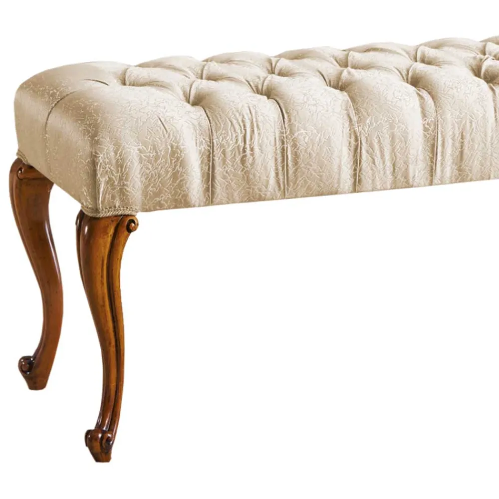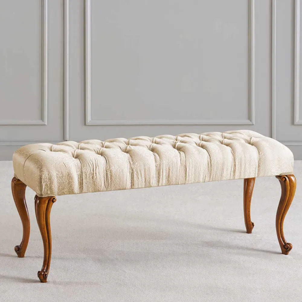 - Sitzfläche dekorativ mit Steppungen und kapitonierten Nähten sowie Borten über den Beinausschnitten gestaltet