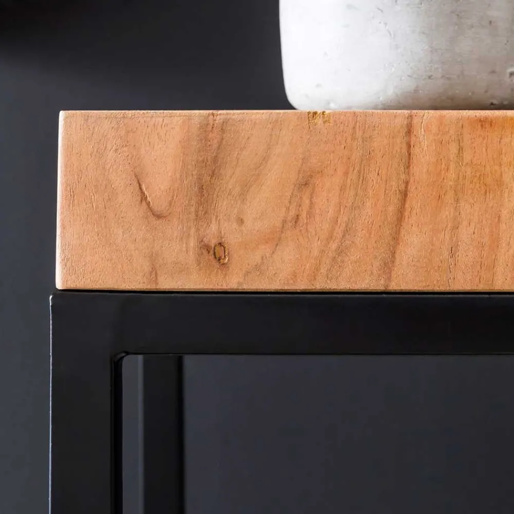- Modischer Beistelltisch in Akaziefarben und Schwarz