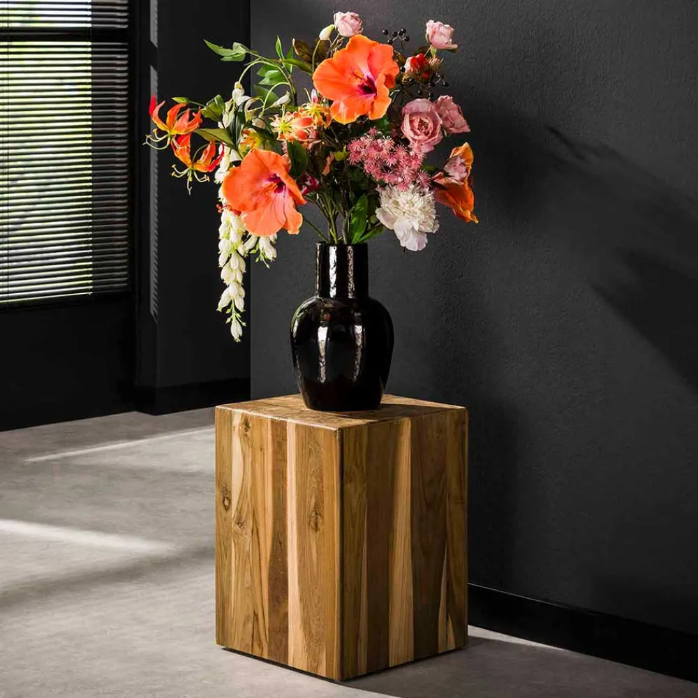 - Praktische Ablage für Blumen oder Deko durch quadratische Tischplatte