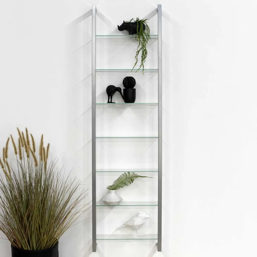 - Erstklassiges Hängeregal in Nickelfarben und Transparent