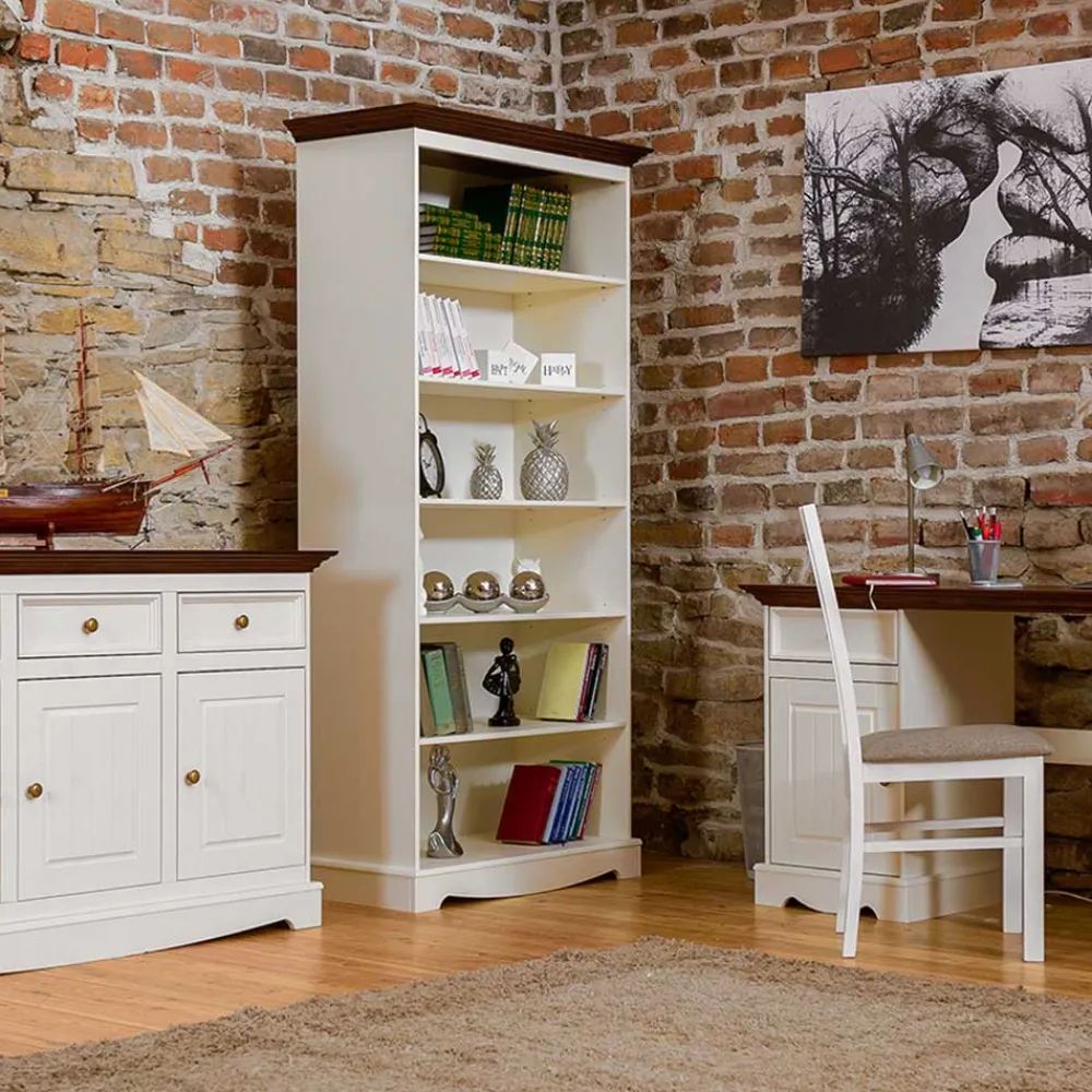 - Dekoratives Bücherregal in Weiß und Nussbaumfarben