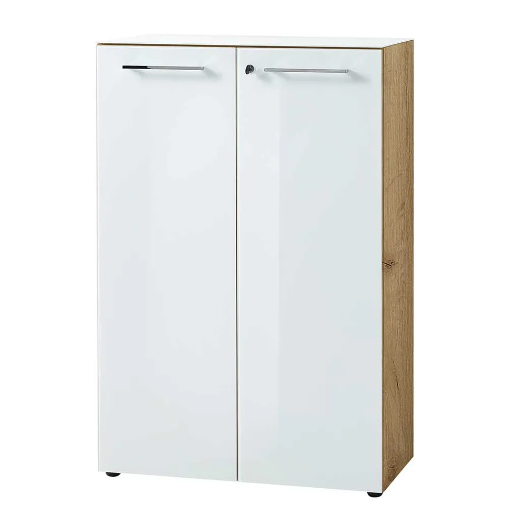 - Funktionale Büro Schrank Kombination in Weiß und Wildeichefarben
