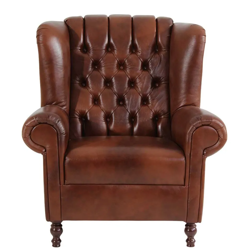 - Bezug aus geprägtem Echtleder, 9-11 mm stark, chromgegerbt, Anilin fassgefärbt, Antikstil Zweiton-Optik