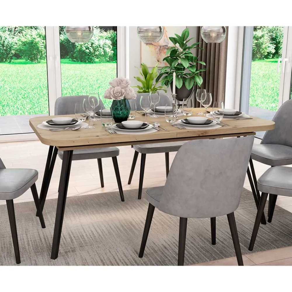 - Schicker Esstisch in Wildeichefarben und Schwarz