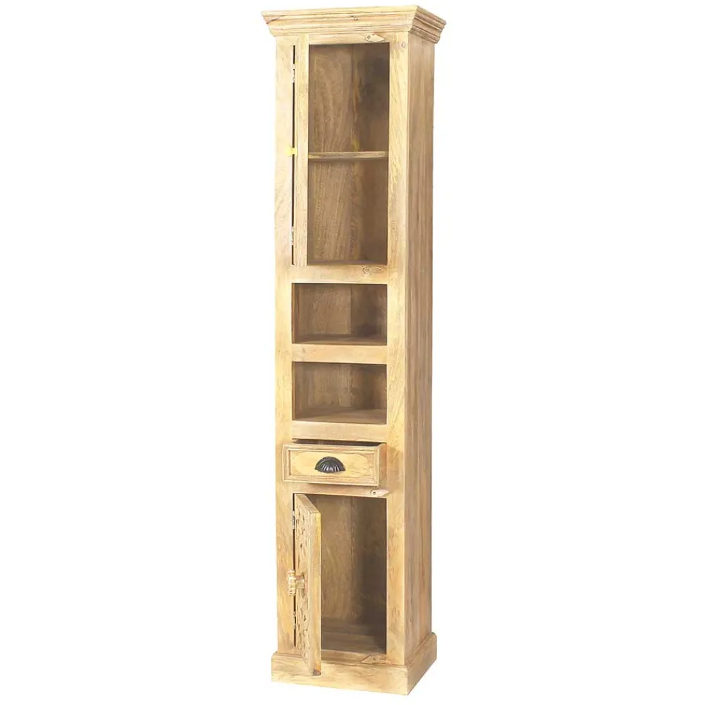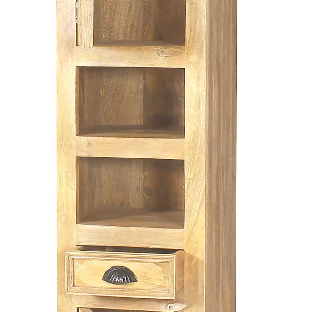 - Dekorativer Bad Hochschrank in Mangoholz Sandfarben