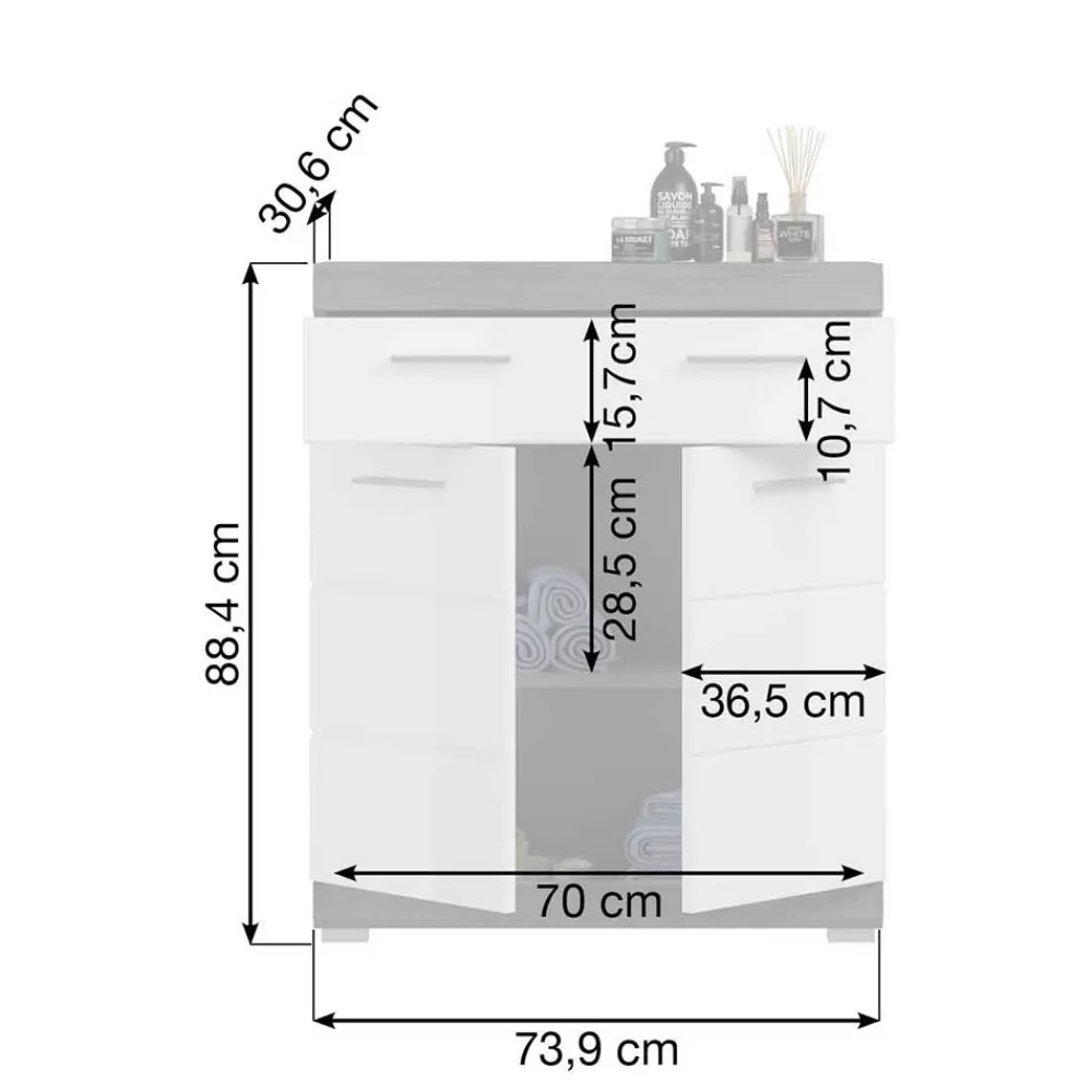 - Gefertigt aus MDF (Front) und Spanplatte (Korpus)