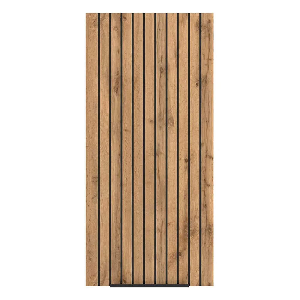 - Oberflächen strapazierfähig in Holzoptik Wildeiche melaminbeschichtet, Rückseite der Tür schwarz foliert