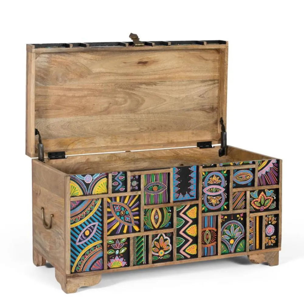 - Auffallende Truhe in Bunt und Mangoholz Naturfarben