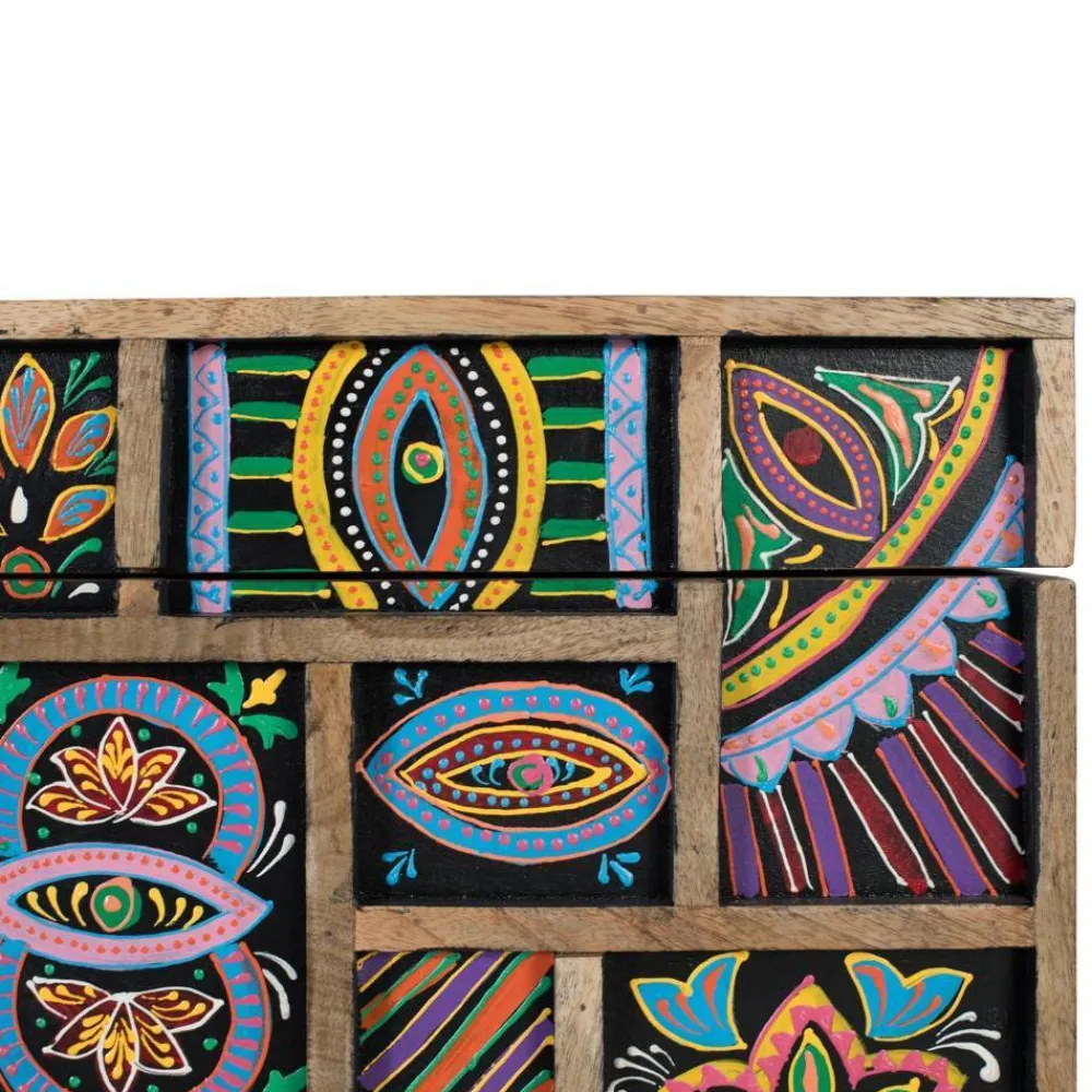 - Mit hübschen Ethno Motiven und aufgesetzten Holzleisten gestaltet