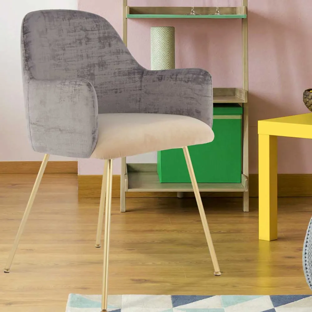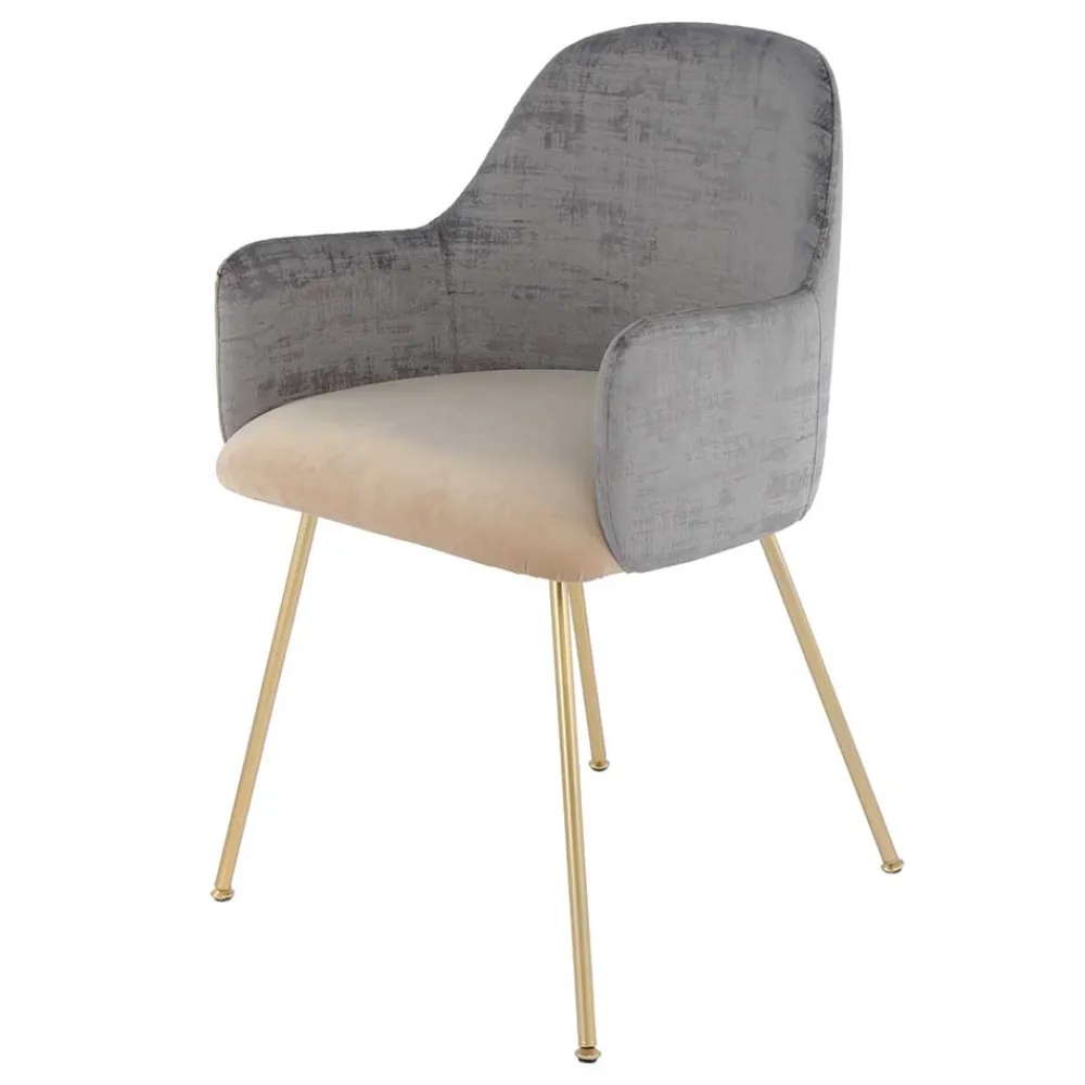 - Eleganter Armlehnstuhl in Grau, Beige und Goldfarben