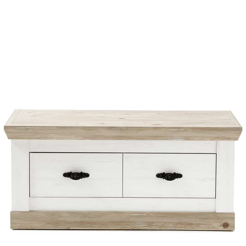 - Modische Garderobenbank in Weiß und Pinie verwittert