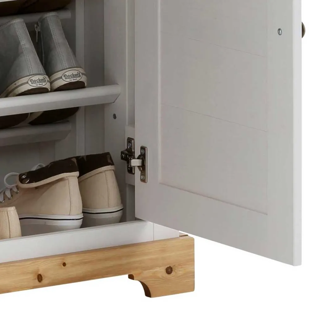 - Praktischer Schuhschrank in Weiß und Kiefer Honigfarben