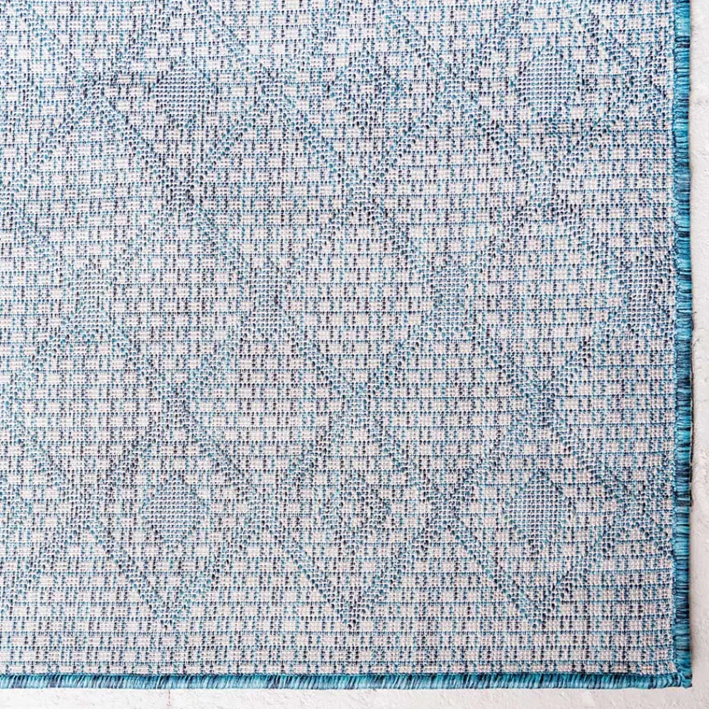 - Attraktiver In- und Outdoorteppich in Petrol und Hellgrau