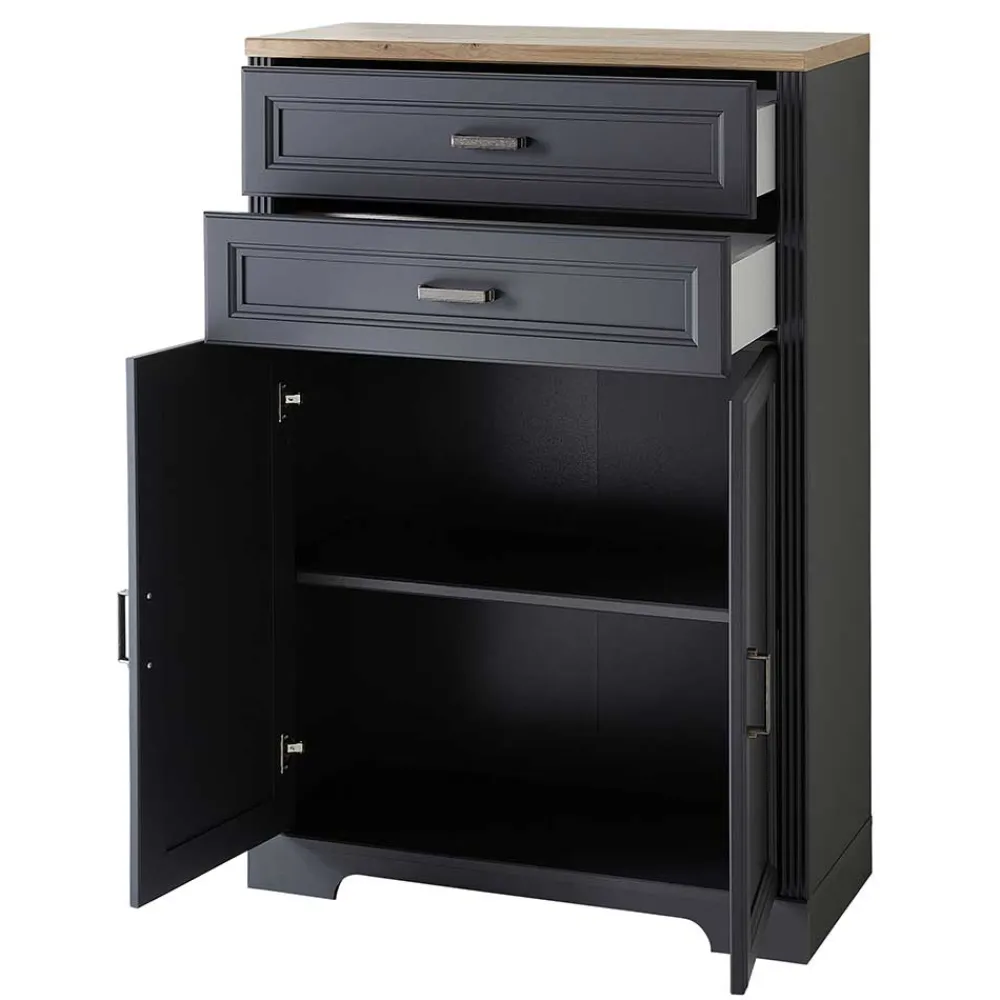 - Praktischer Aktenschrank in Dunkelgrau und Eichefarben